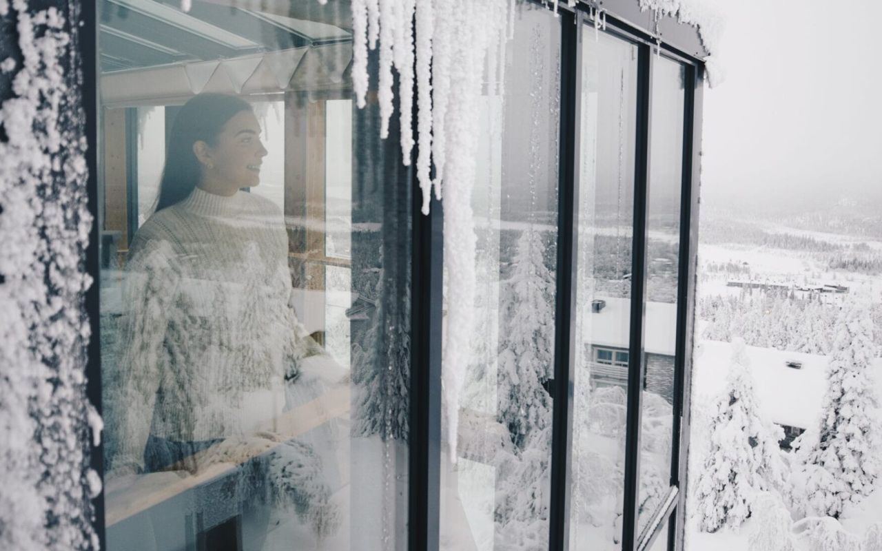 Jokaisessa huoneessa maisema on osa kokemusta. Lasisten pintojen läpi avautuva uljas luonto on aina läsnä: hiljaisena, voimakkaana ja vuodenaikojen mukaan muuttuvana. Erilaiset sviitit, kuten maailman romanttisimmaksi palkittu Kotkanpesä, tarjoavat ainutlaatuisen tavan yöpyä tunturin huipulla.